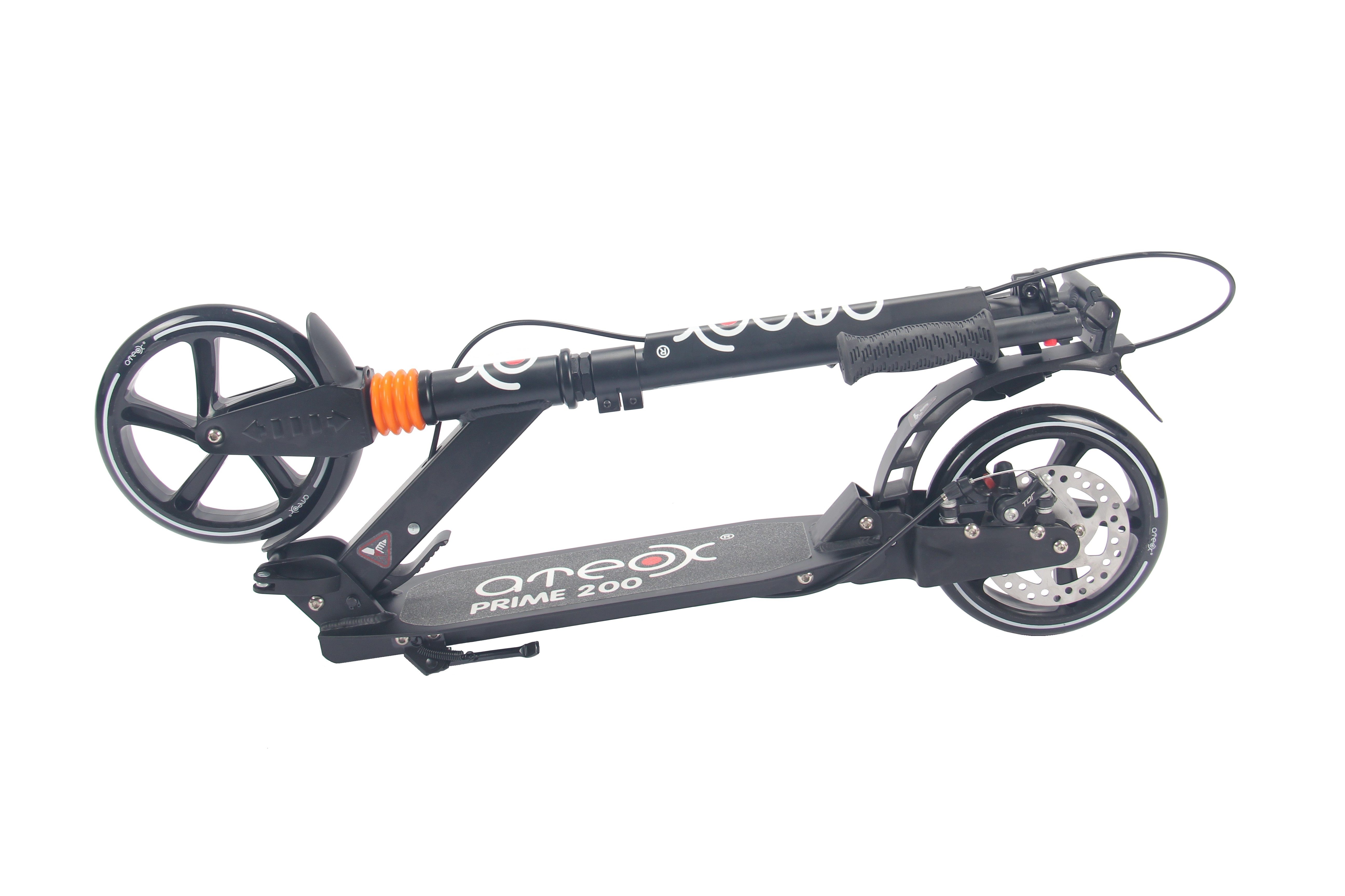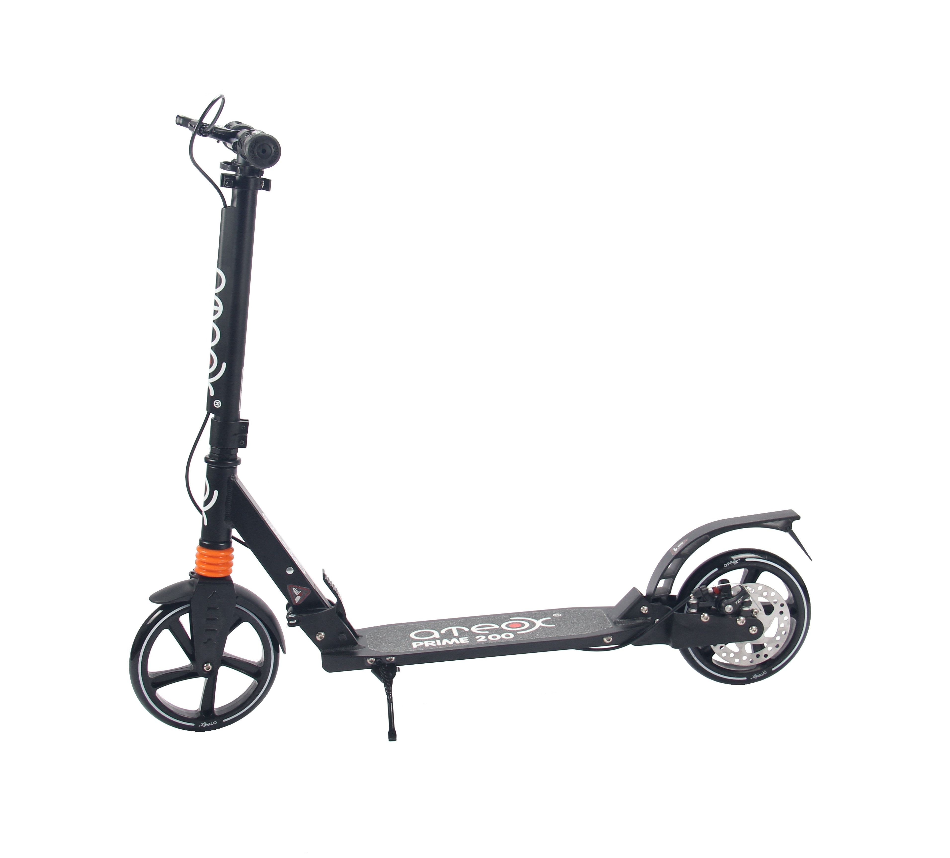 АTEOX PRIME 200 - городской самокат для взрослых и детей от 8 лет. Большие 200 мм колеса, оснащенные подшипниками последнего поколения ABEC 7 позволяют добиться длительного кручения колес при минимальных усилиях. Также немаловажно, что руль PRIME 200 имеет зажим для надежной фиксации рукояток, благодаря чему исключается их вибрация на любой скорости. Ручной дисковый тормоз, удобная и очень простая в использовании система складывания самоката, широкая нескользящая дека, регулировка руля в трех положениях, стильный, современный, лишенный излишеств дизайн - все это АTEOX PRIME 200!